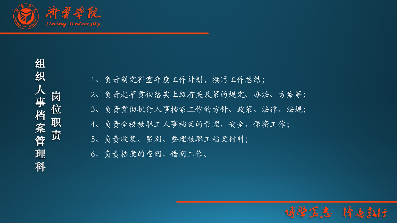 济宁学院人事处 组织人事档案管理科 岗位职责